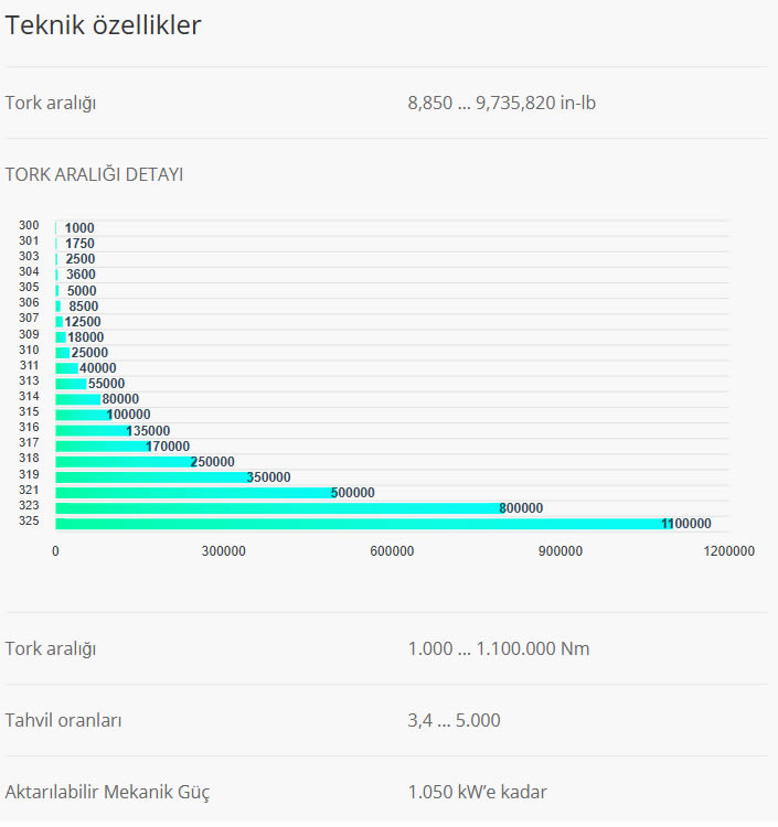 300 serisi kompakt ve güçlü. Planet aktarma organları, azami yüklerin ve etkilerin istisnadan daha çok kural olduğu tüm ağır hizmet uygulamaları için onları ideal seçim haline getirir. Montaj, dişli modeli, çıkış şaftı ve motor arayüzü sayesinde ürün yapılandırması son derece çok yönlüdür. Tüm özellikler, 1.000 ila 1.100.000 Nm tork aralığında 20 ince aralıklı çerçeve boyutunun her biri için mevcuttur.