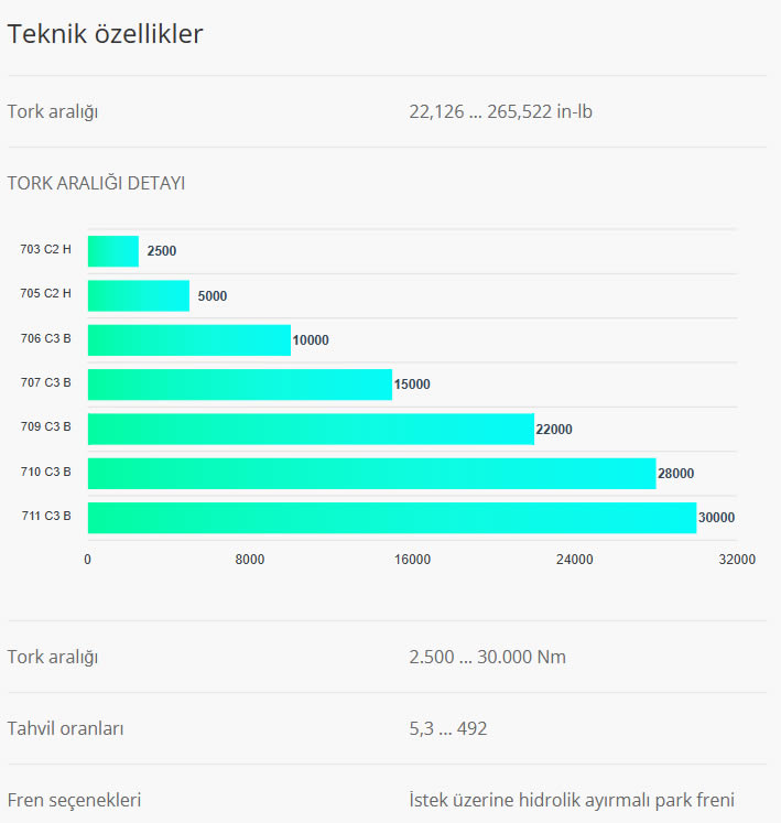 Bonfiglioli 700C Serisi, herhangi bir palet için son derece uygundur. Kompakt, dayanıklı tasarım, yüksek tork ve yük kapasiteleri ve opsiyonel mekanik contalar sayesinde bu çözümler bu makineler için mümkün olan en iyi çözümdür. Tüm ünitelerde arıza güvenlik sistemli el freni bulunup, ünitelerin çoğu kovanlı tip sabit ya da değişken sistemlere sahiptir.